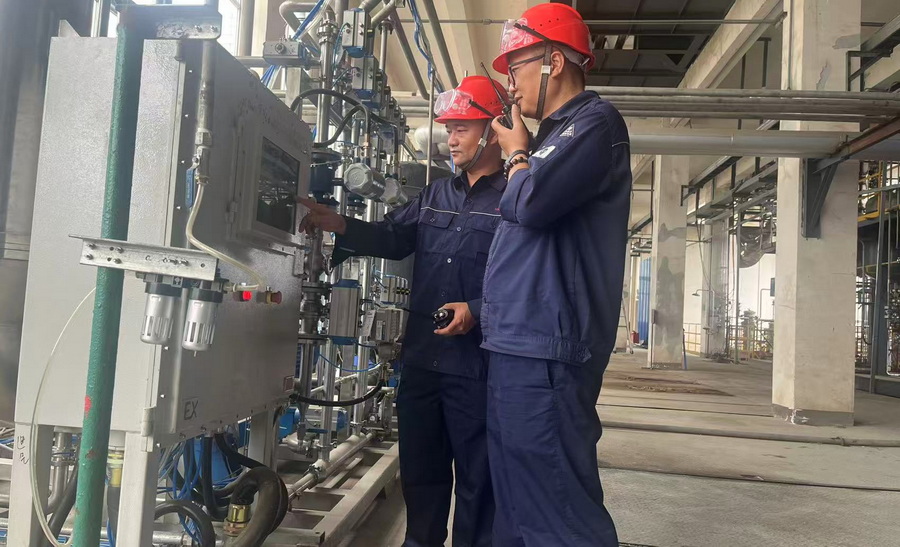 2024年7月的一个夜班,虞孝云师徒二人进行“二氯化硫中试研究”实验,酷暑时节,在车间工段,徒弟在记录着数据,虞孝云观察着压力与流量,“师傅,半个小时了,反应温度只比平常高了一度,应该不要紧吧?”“不行,高一度势必会影响产品含量和质量,必须精准控制”,就这样,他们连续在反应釜旁边工作了2个多小时,忍受着炎热和蚊虫叮咬,直到反应釜的温度控制在合理范围内。